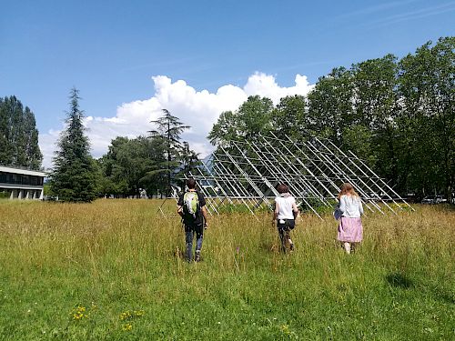 Cette année, l’événement a eu lieu à la Maison de la création et de l’innovation (MACI), notre nouveau bâtiment situé sur le campus principal de l’Université Grenoble Alpes, ainsi que sur quelques sites alpins environnants. Notre nouvelle installation, la MACI, dispose d’espaces spécialisés pour la réalisation et la documentation de recherches fondées sur la pratique et vise à soutenir la manière dont les arts, les sciences humaines et les sciences sociales produisent des recherches en matière de processus et de produits.