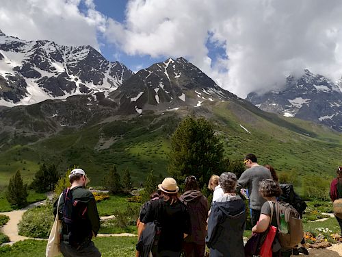 Durant ces six jours d’école doctorale intensive, les participants ont la possibilité de participer à différents ateliers et séminaires. Ceux-ci comprennent des ateliers sur le mouvement, l’écriture créative, la cartographie et la performance animés par un groupe international de chercheurs et d’artistes. La semaine comprend des visites de paysages culturels et naturels dans les Alpes.